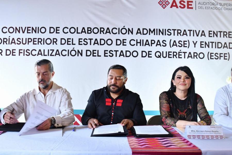 Chiapa de Corzo, Chiapas.–La Mtra. Ana Laura Romero Basurto asistió como invitada al evento encabezado por el Auditor Superior del Estado de Chiapas, José Antonio Meza, con motivo de la firma del Convenio de Colaboración entre la Auditoría Superior del Estado de Chiapas y la Entidad Superior de Fiscalización del Estado de Querétaro.